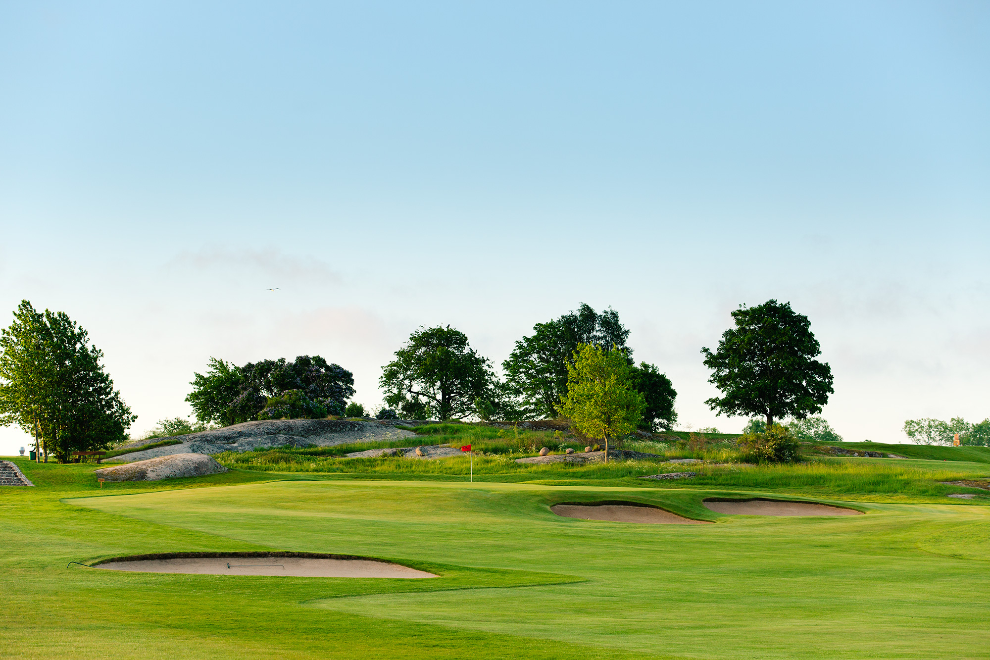 De svagt kuperade 18 hålen, som designats av Pierre Fulke och Bengt Lorichs, är naturligt utlagda och följer den unika naturen för området. Det är mycket välskötta fairways och greenerna är speciellt uppskattade. Det är Penn A4-gräs som används och som garanterar er golfare att få en optimal känsla och som dessutom är bättre för miljön. Greenerna som är singelklippta, är också byggda med de senaste teknikerna inom dränering.